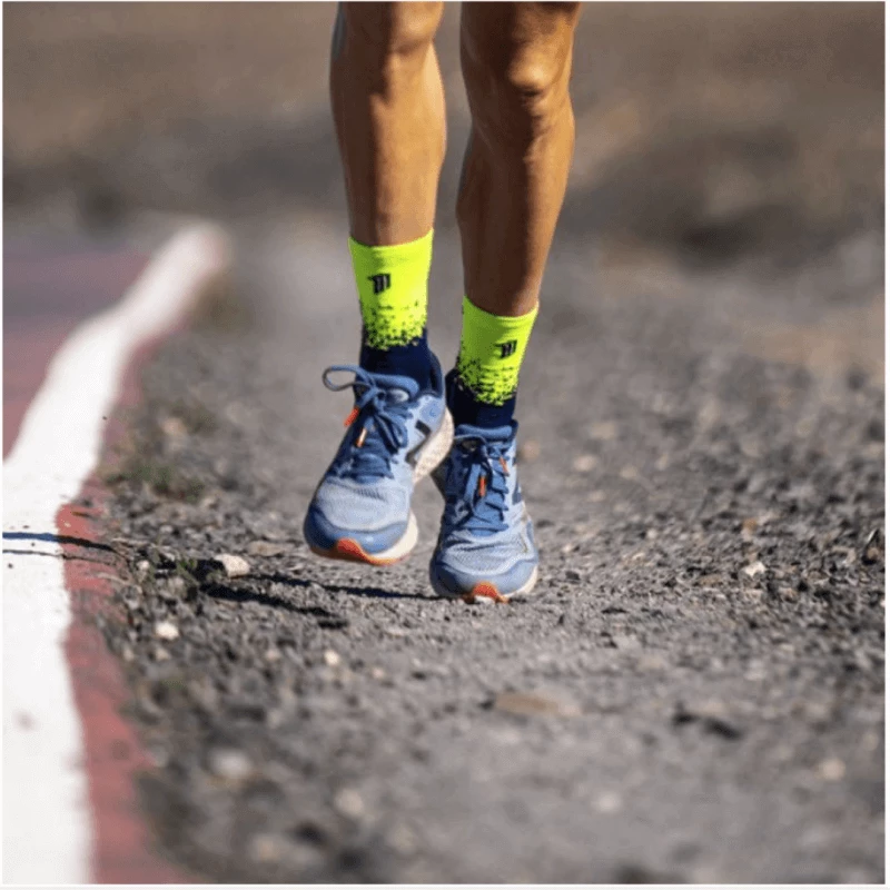 Calcetines Meryl® de alta calidad para ciclismo/carrera. Con un puño largo de estiramiento medio que proporciona comodidad y la malla ultra-transpirable que asegura una perfecta transpiración. Para garantizar una mayor durabilidad se proporciona protección en los dedos y en el talón. Probados por nuestros Pro-Atletas y clientes en las carreras más desafiantes.