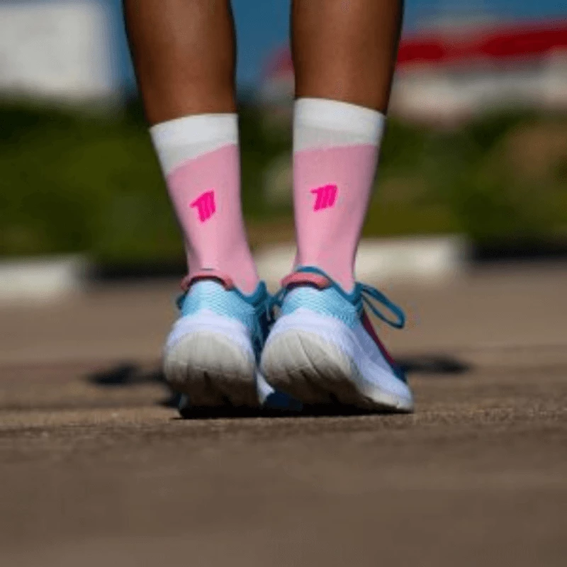 Tiene un nivel de compresión medio que ayuda a la circulación sanguínea y reduce la inflamación en carreras de mayor duración. El talón y la puntera están fabricadas en rizo para minimizar el impacto y crear una mayor sensación de confortabilidad. Además, previene y evita la aparición de ampollas.