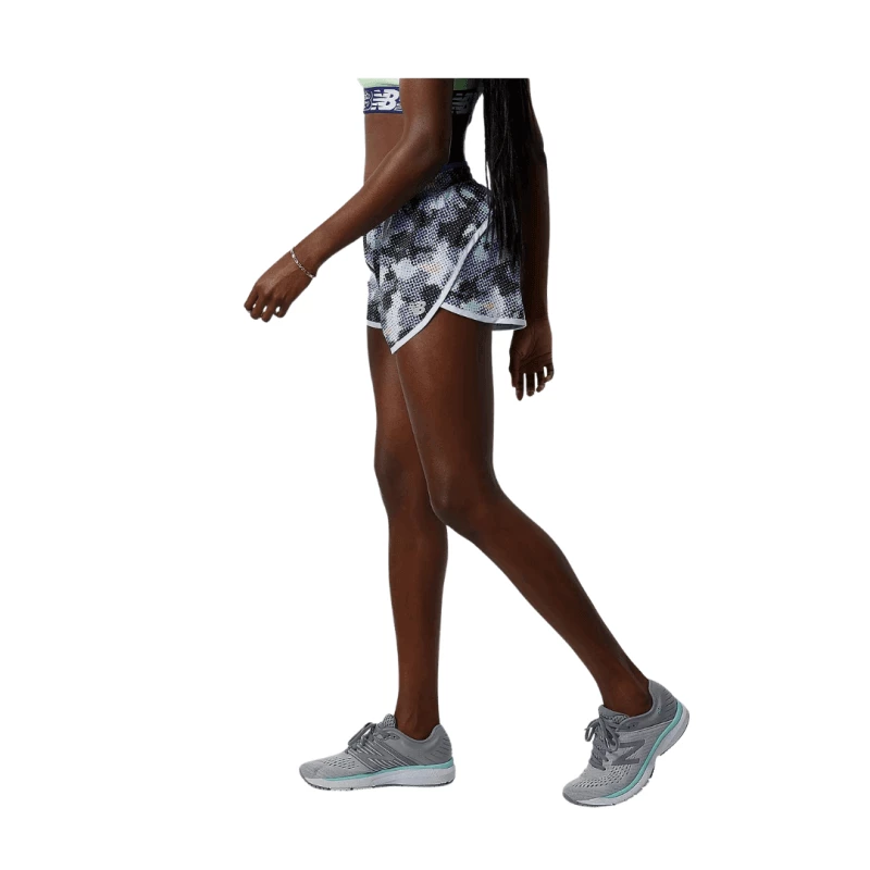 Supera tu velocidad máxima con el pantalón corto Printed Accelerate. Vienen equipados con la tecnología NB DRY para absorber la humedad, lo que ayuda a evitar que el sudor se quede cerca de tu piel. Estos pantalones cortos de running para mujer cuentan con un calzoncillo interno para mejorar la comodidad, y el calzoncillo tiene un bolsillo para mantener los objetos pequeños seguros mientras estás en movimiento.