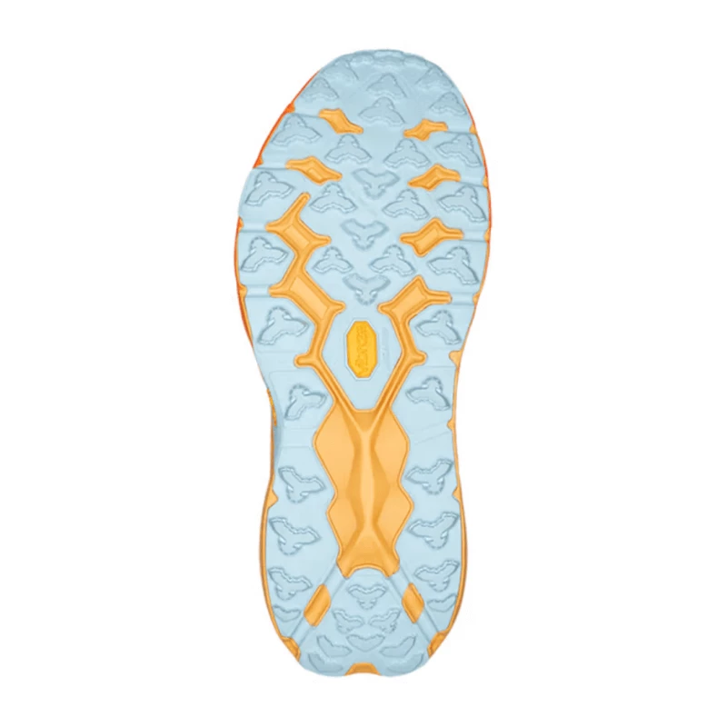 El compuesto de la entresuela, aún más ligero que antes, proporciona la característica pisada suave de HOKA sin reducir la altura del tacón. Combinado con una malla jacquard de doble capa, esto garantiza que la última estrella del trail inspire confianza en cualquier terreno.